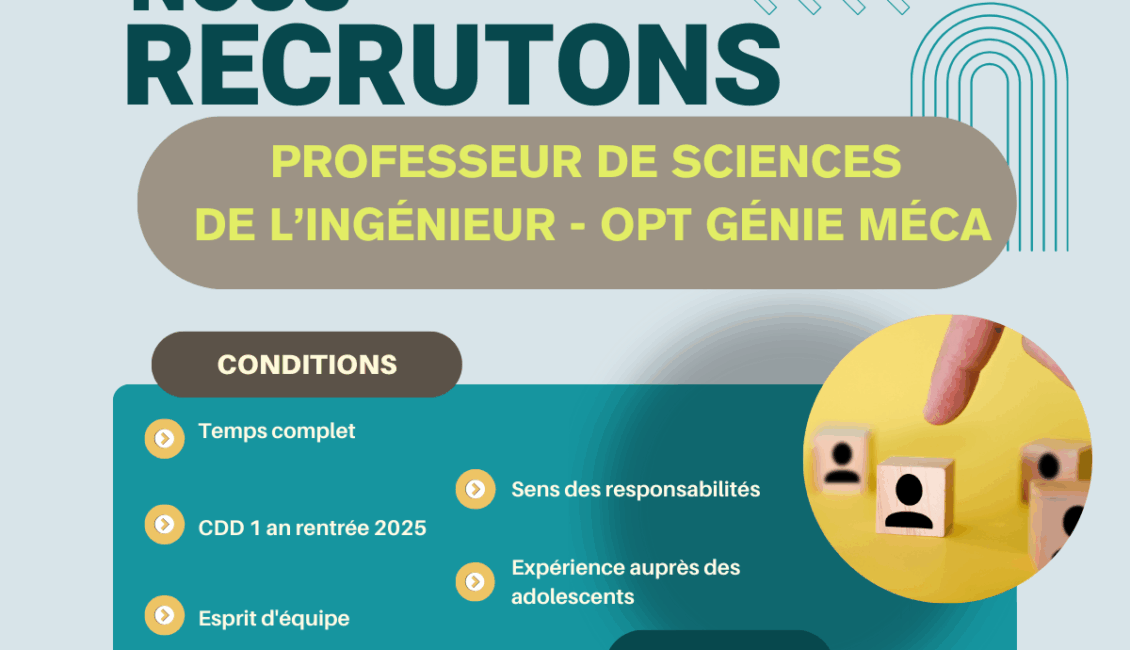 Suite à notre dernier point avec la direction de l’établissement, nous relayons des fiches de candidature. La CSI recherche entre autres des enseignants au lycée pour la filière STI2D, l’Allemand et un Accompagnant d’Elève en Situation de Handicap.